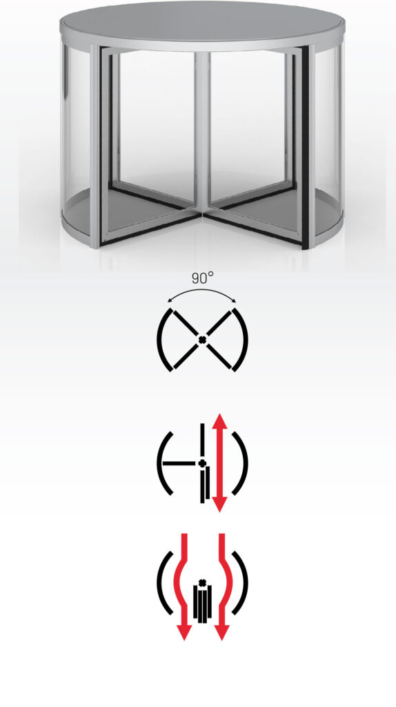 U situacijama kada se zahteva što širi prolaz, krila se mogu dodatno zaokrenuti i osloboditi maksimalan prostor za evakuaciju.